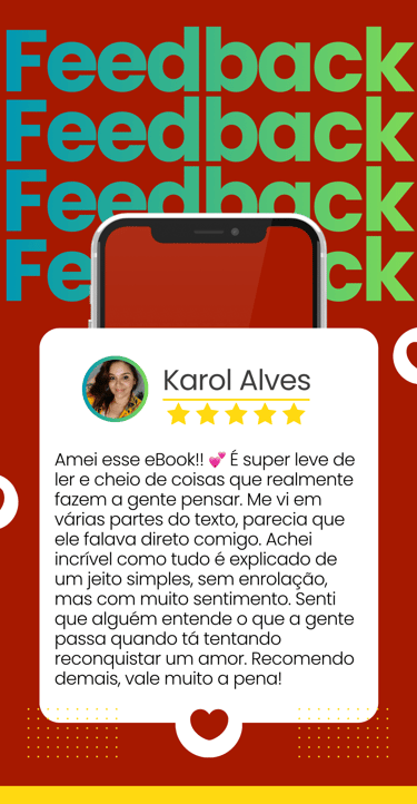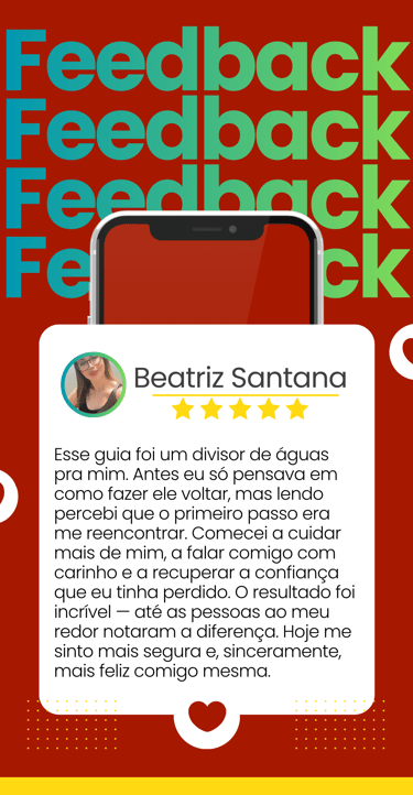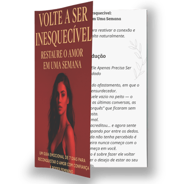Tudo é explicado de forma simples, para que você consiga aplicar as orientações no seu ritmo e começar a ver mudanças reais na forma como se sente e se posiciona diante do amor.